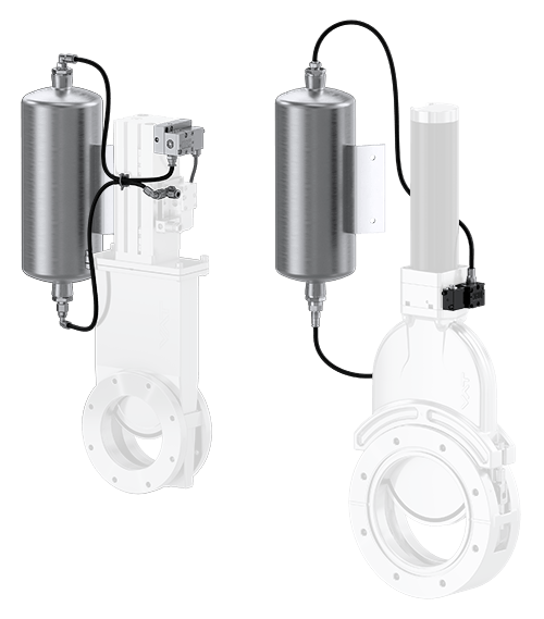 这就是压缩空气安全蓄能器发挥作用的地方。它保证在压缩空气故障时阀门紧急移动到关闭或打开的位置。